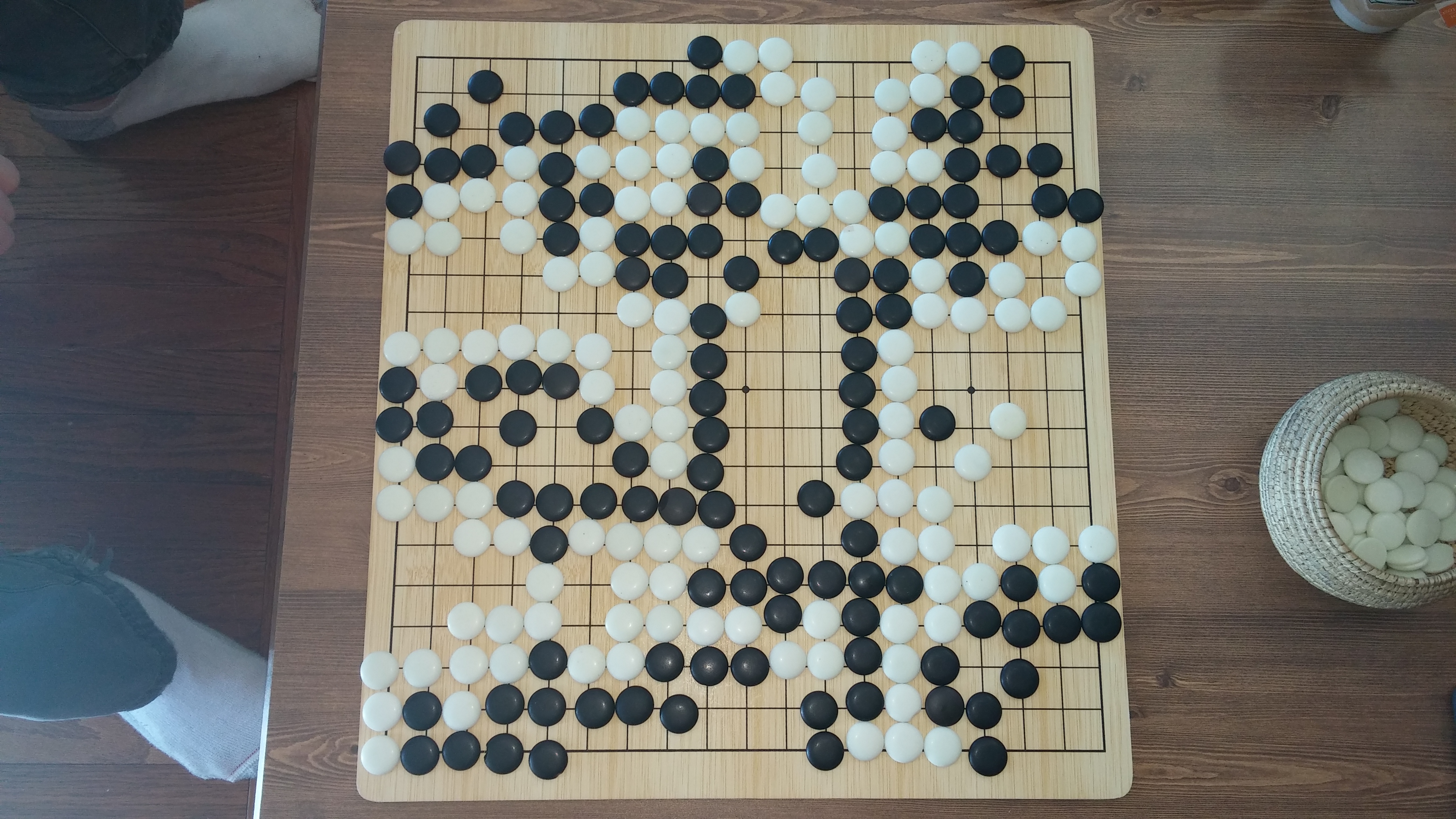 On a positive note, I won my second game, and although I don’t have a game record I had a really exciting third match. This picture is the final result. The prisoners are not in the picture, but black won by about 10 points. I was white, but the match was really fun, I love close games the most, even though I learn more from the ones where I get crushed completely.